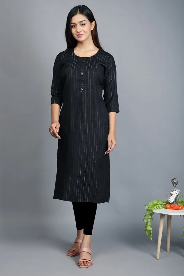 Black Striped 3/4 Sleeve Straight Cotton Blend Kurta