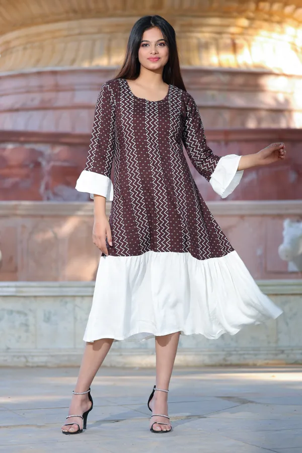 Coffee Printed Anarkali Rayon Kurta
