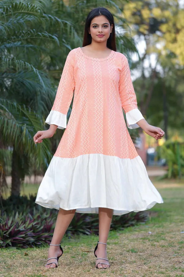 Peach Printed Anarkali Rayon Kurta